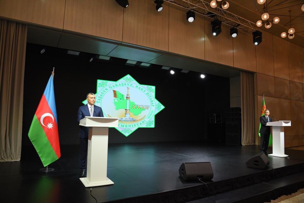 Türkmənistanın Mədəniyyət naziri Atageldi Şahmuradov ölkəsinin müstəqilliyinin 32-ci ildönümü münasibətilə təşkil edilən tədbirdə iştirak etməkdən məmnunluğunu bildirib. Azərbaycanın 44 günlük Vətən müharibəsindəki Zəfərinin bütün türk dövlətləri kimi, Türkmənistanı da çox sevindirdiyini deyən natiq Şuşanın TÜRKSOY-un mədəniyyət paytaxtı seçilməsinin önəmini vurğulayıb. Nazir ölkələrimiz arasında əlaqələrin daha da dərinləşəcəyinə əminliyini ifadə edib.