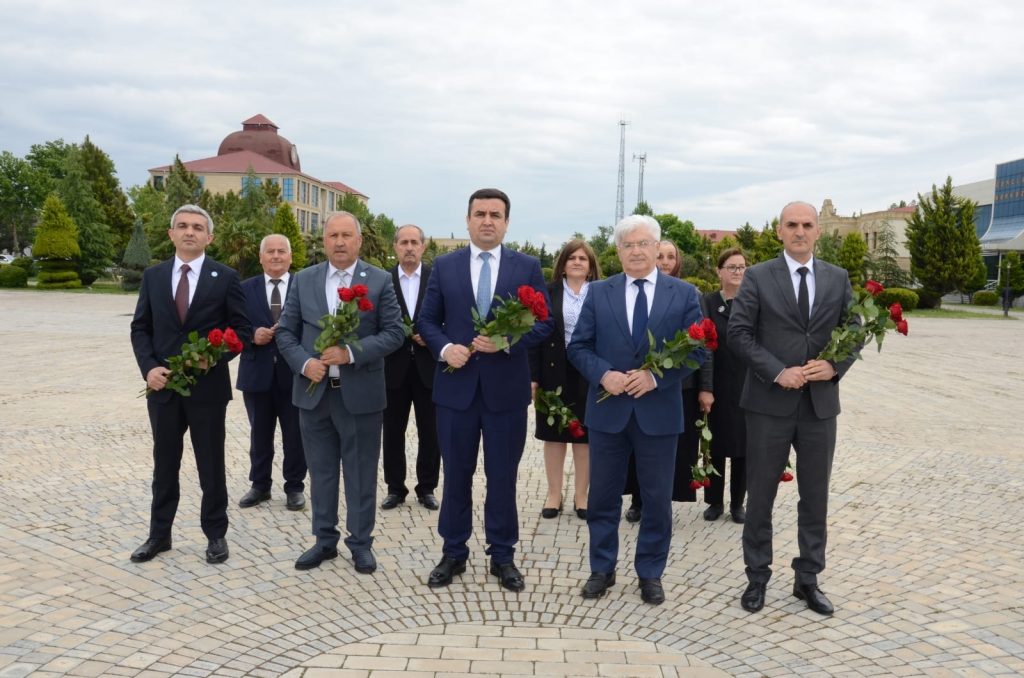 Tədbir iştirakçıları əvvəlcə Ümummilli Lider Heydər Əliyevin abidəsini ziyarət edərək önünə gül dəstələri düzüblər.