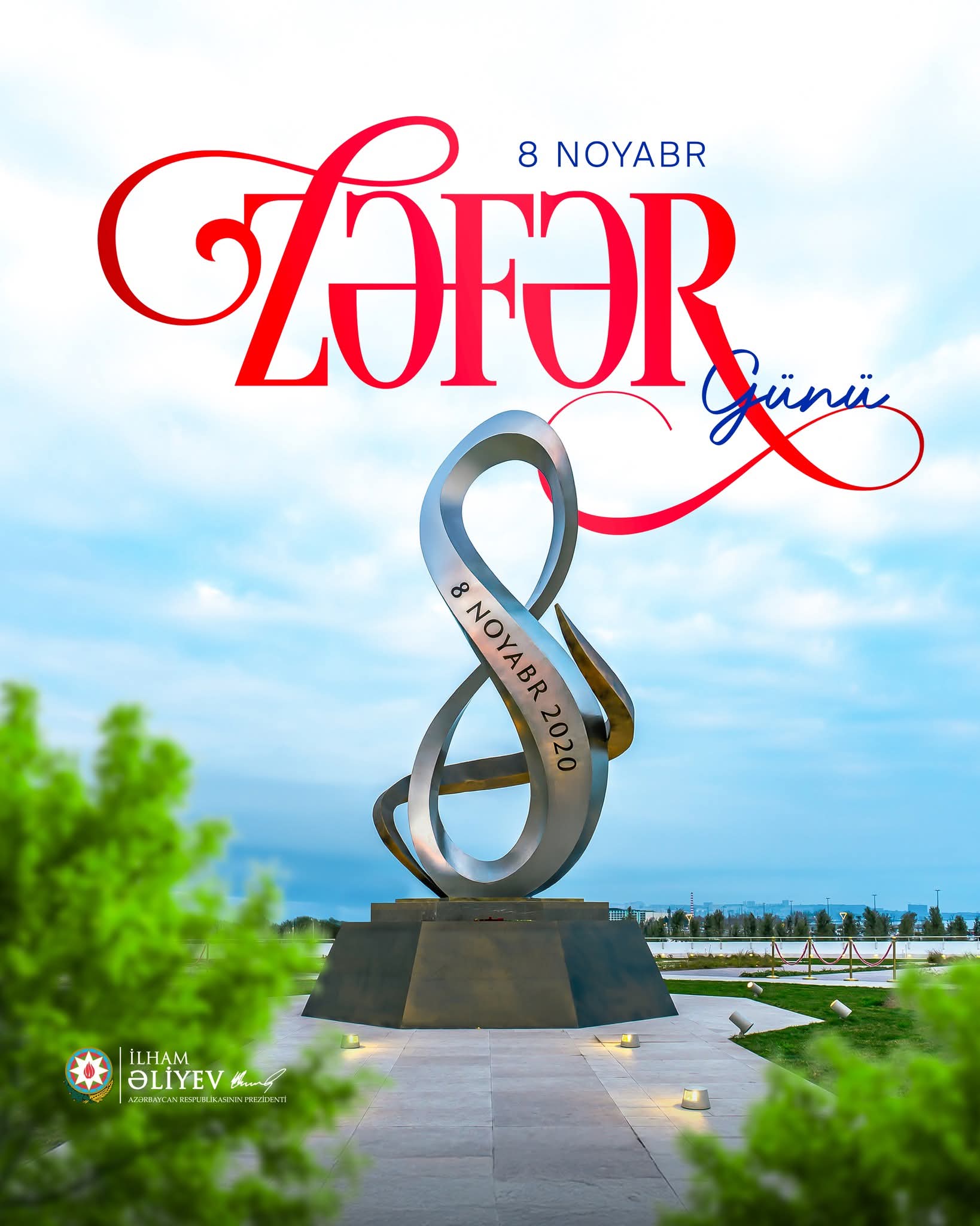 Bu müqəddəs gün Azərbaycan xalqının azadlıq iradəsinin, milli birliyinin, dövlətçiliyimizin və müstəqilliyimizin təntənəsidir. 8 Noyabr – Zəfər Günü xalqımızın yüzillik arzularını gerçəkləşdirən, tariximizin ən parlaq səhifələrindən birinə çevrilən gündür. Məhz Sizin müdrik və qətiyyətli rəhbərliyiniz, Müzəffər Ali Baş Komandan kimi göstərdiyiniz iradə, strateji zəka və sarsılmaz milli ruh sayəsində qəhrəman Azərbaycan Ordusu 30 illik erməni işğalına son qoyaraq torpaqlarımızı azad etdi, dövlətimizi öz suverenliyinə qovuşdurdu.