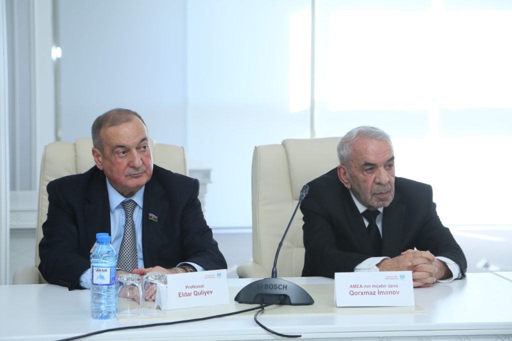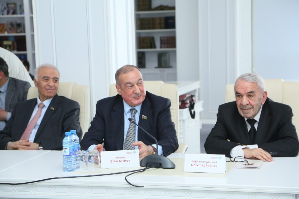 Tədbirdə çıxış edən Azərbaycan Ağsaqqallar Şurasının sədri, millət vəkili, professor Eldar Quliyev Ulu Öndər Heydər Əliyevin uğurla həyata keçirdiyi elm siyasətinin bu gün möhtərəm Prezidentimiz cənab İlham Əliyev tərəfindən yüksək səviyyədə davam etdirildiyini vurğulayaraq dövlət başçısının daim elmə, təhsilə, mədəniyyətimizə xüsusi diqqət və qayğı ilə yanaşdığını bildirib. AMEA-nın müxbir üzvü Qorxmaz İmanovun keçdiyi şərəfli həyat yolundan, Azərbaycanın iqtisadiyyat elminin inkişafındakı dəyərli xidmətlərindən söz açıb. Qeyd edib ki, Qorxmaz İmanov yalnız alim kimi deyil, həm də yüksək mənəvi keyfiyyətlərə malik alicənab bir insan, dəyərli bir ağsaqqal kimi də xalq arasında böyük hörmət qazanmışdır. Onun müdrikliyi, insanlara qayğıkeş münasibəti, milli-mənəvi dəyərlərə bağlılığı, gənc nəslə örnək olan həyat prinsipləri cəmiyyətimiz üçün əsl nümunədir. Daha sonra Eldar Quliyev Azərbaycanda elmin inkişafına verdiyi töhfələrə, yüksəkixtisaslı elmi kadrların hazırlanmasında, gənc alimlərin yetişdirilməsində, onlara milli-mənəvi dəyərlərin aşılanmasında göstərdiyi xidmətlərə görə və 85 illik yubileyi münasibətilə Azərbaycan Ağsaqqallar Şurası tərəfindən AMEA-nın müxbir üzvü Qorxmaz İmanovun “Fəxri Ağsaqqal” döş nişanı ilə təltif edildiyini vurğulayaraq döş nişanını və hədiyyələri görkəmli alimə təqdim edib. Onu 85 illik yubileyi münasibətilə ürəkdən təbrik edərək uzun ömür, möhkəm cansağlığı və gələcək fəaliyyətində uğurlar arzulayıb.