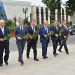 Əvvəlcə tədbir iştirakçıları Ümummilli Lider Heydər Əliyevin abidəsini ziyarət edərək önünə gül dəstələri düzüblər.