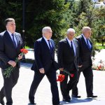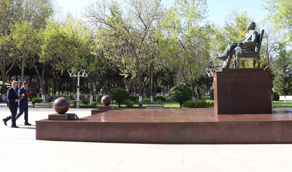 Əvvəlcə tədbir iştirakçıları Ümummilli Lider Heydər Əliyevin abidəsini ziyarət edərək önünə gül dəstələri düzüblər.