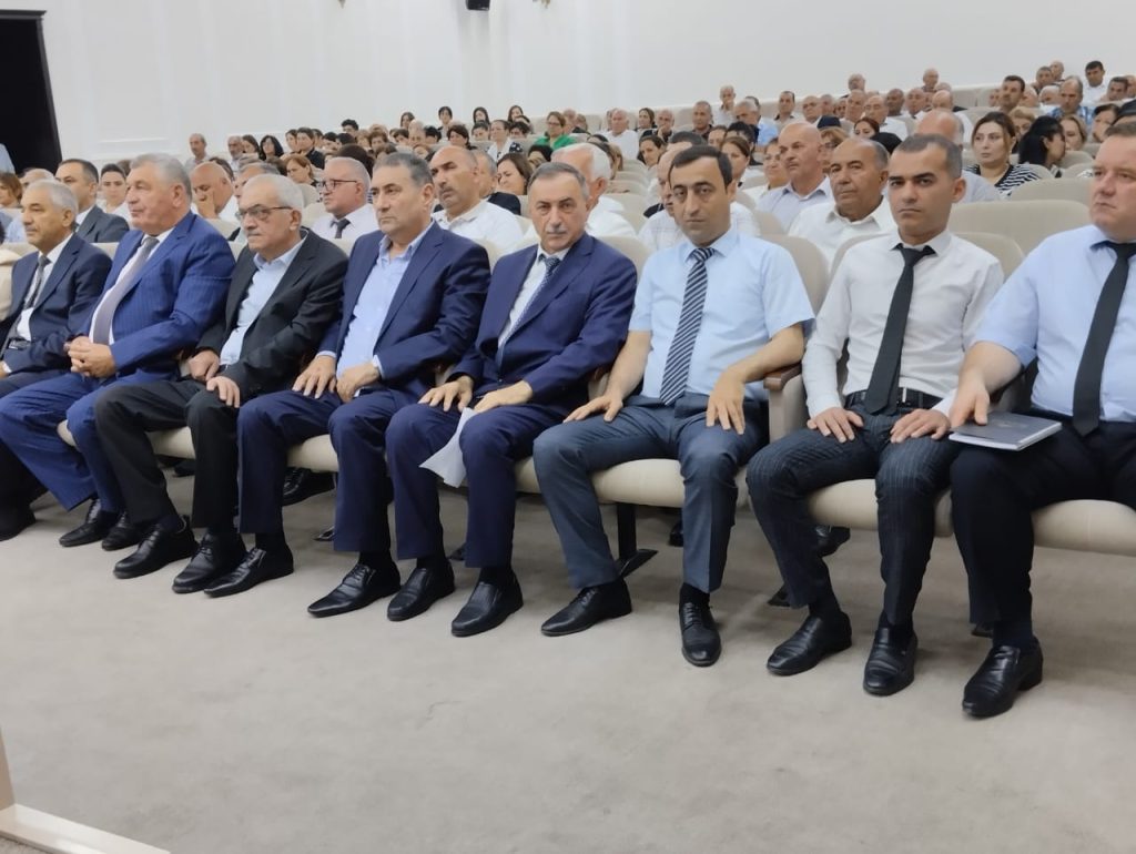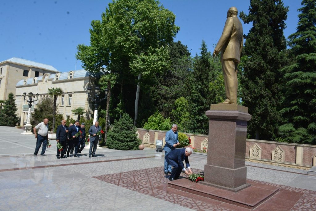 Toplantı iştirakçıları əvvəlcə Ümummilli Lider Heydər Əliyevin abidəsi önünə gül dəstələri düzərək, xatirəsini ehtiramla anıblar.