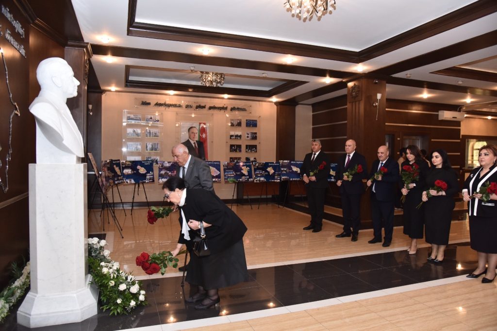 Nəsimi Rayon İcra Hakimiyyətində baş tutan görüşdən öncə Ulu Öndər Heydər Əliyevin büstü ziyarət olunub, önünə gül dəstələri düzülüb. Sonra Ümummilli Liderin 102-ci ildönümü ilə bağlı təşkil olunmuş sərgiyə baxış keçirilib.