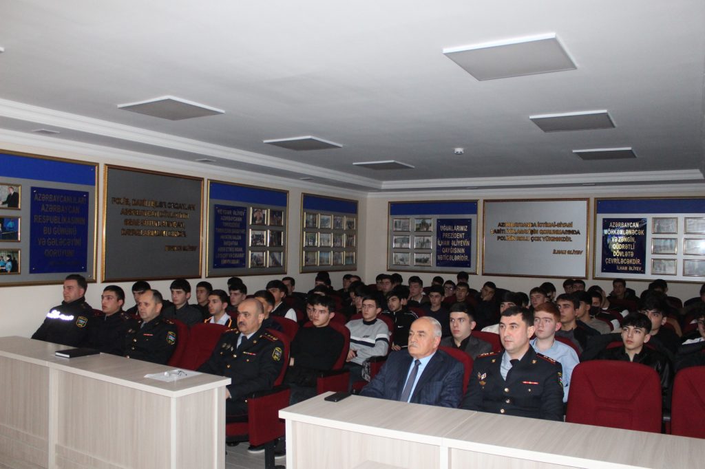 Şəki Rayon Ağsaqqallar Şurasının sədri, uzun illər hüquq-mühafizə orqanlarında çalışmış Vaqif Əhmədov öz çıxışı zamanı gənclərdə vətənpərvərlik hissinin gücləndirilməsi məqsədilə maarifləndirici söhbətlər aparıb, Polis Akademiyasının tarixi, onun inkişaf mərhələləri barədə məktəbliləri məlumatlandırıb.