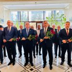 Tədbir iştirakçıları əvvəlcə Ulu Öndər Heydər Əliyevin abidəsini ziyarət edərək önünə gül dəstələri düzüblər.