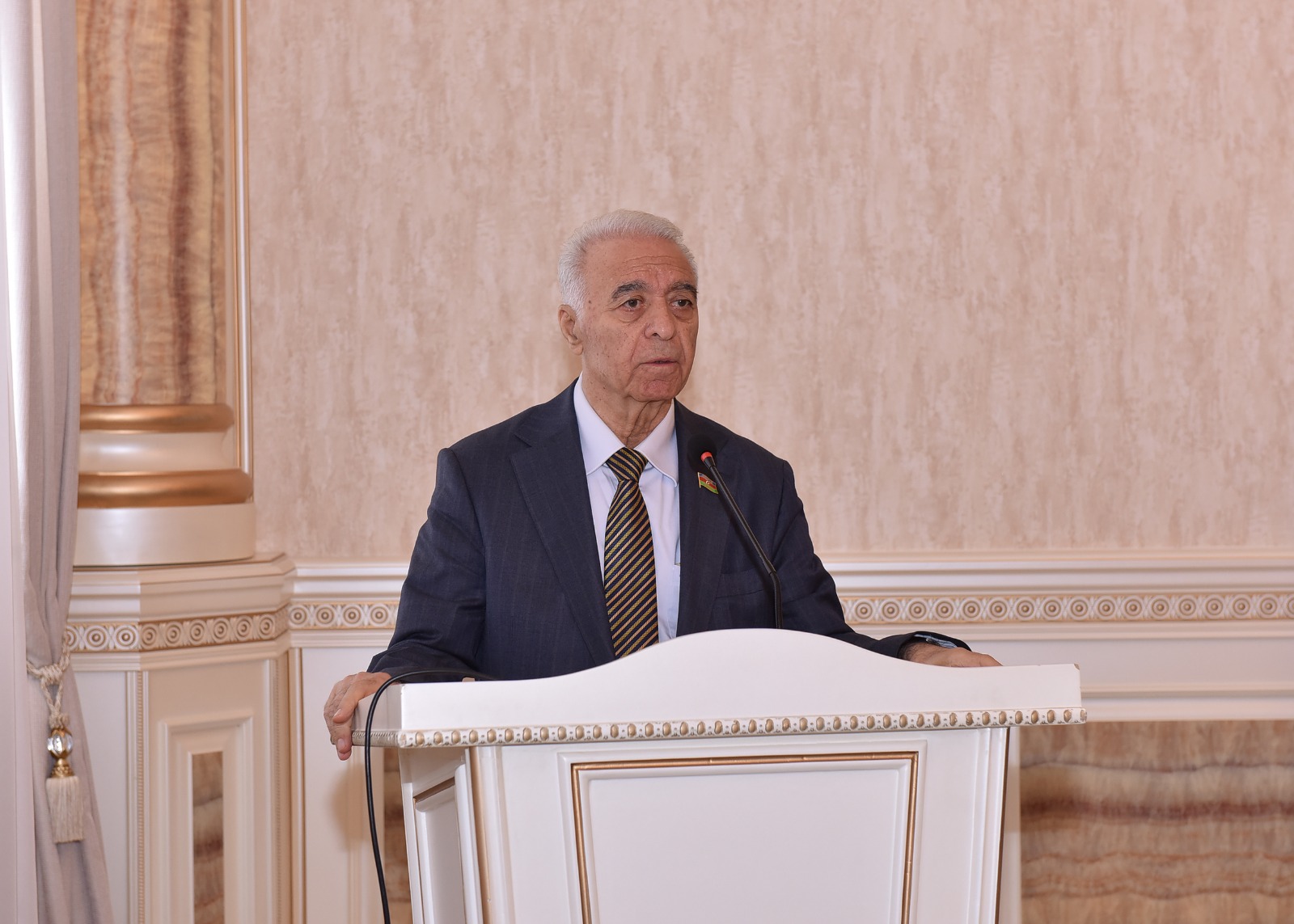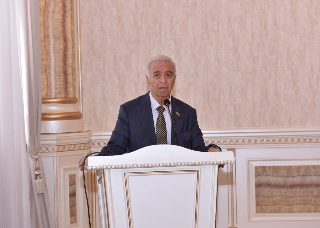 Azərbaycan Ağsaqqallar Şurası sədrinin müavini, millət vəkili, professor Eldar İbrahimov Şuranın sədri, millət vəkili, professor Eldar Quliyevin səmimi salamlarını tədbir iştirakçılarına çatdırdıqdan sonra milli-mənəvi dəyərlərimizin qorunmasında və təbliğində, gənclərimizin vətənpərvərlik ruhunda tərbiyə edilməsində ağsaqqallarımızın danılmaz əməyindən bəhs edib. Xalqımızın Ümummilli Lideri Heydər Əliyevin ağsaqqallara verdiyi yüksək dəyərdən, onları “milli-mənəvi dəyərlərimizin qızıl fondu” adlandırmasından söz açan natiq dövlət başçısı cənab İlham Əliyevin və Azərbaycan Respublikasının Birinci vitse-prezidenti Mehriban xanım Əliyevanın ağsaqqallarımıza, ziyalılarımıza, həmçinin şəhid ailələrinin üzvlərinə, qazilərə yüksək diqqət və qayğı göstərdiyini vurğulayıb. Möhtərəm Prezidentimiz, müzəffər Ali Baş Komandanımız cənab İlham Əliyevin başçılığı ilə rəşadətli Ordumuzun azad etdiyi torpaqlarımızda gedən böyük quruculuq işlərindən, məcburi köçkünlərin öz doğma yurdlarına qayıtmasından danışıb. Ölkə başçısının uğurlu daxili və xarici siyasətini, xüsusilə son zamanlarda Vaşinqtona və Çinə olan işgüzar səfərlərini yüksək dəyərləndirib. Eldar İbrahimov, həmçinin, öz çıxışında ağsaqqalların üzərinə düşən mühüm vəzifələrə də toxunaraq gənclərin Vətənə, xalqa, dövlətə sədaqət ruhunda, zərərli təsirlərdən uzaq olan sağlam əsaslar üzərində tərbiyəsi işində ağsaqqallara daim böyük ehtiyacın olduğunu tədbir iştirakçılarının diqqətinə çatdırıb. Sumqayıt Şəhər Ağsaqqallar Şurasının fəaliyyətini qənaətbəxş qiymətləndirərək öz tövsiyələrini bildirib, cəmiyyətimizin, eləcə də ağsaqqalların qarşısında duran məsələlərdən danışıb. Ailə institutunun zəifləməsi, boşanmaların sayının artması, erkən bağlanan nikahlar və zərərli vərdişlərə aludəliçik barədə narahatlığını ifadə edib. Bu halların qarşısının alınmasında ağsaqqalların maarifləndirici fəaliyyətinin xüsusi rol oynadığını bildirərək, onların bu istiqamətdə həyata keçirilən işlərdə daha fəal iştirak etmələrinin əhəmiyyətini vurğulayıb. Sonda Eldar İbrahimov ağsaqqallara və bütün tədbir iştirakçılarına möhkəm cansağlığı və dəyərli fəaliyyətlərində davamlı uğurlar diləyib.