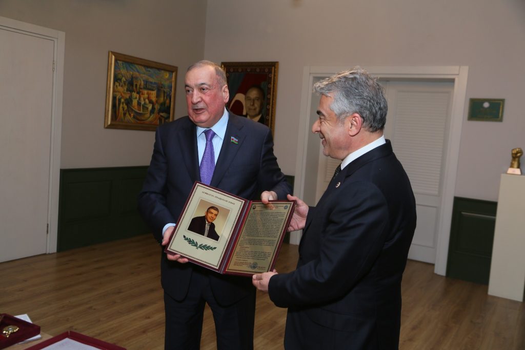 Daha sonra Azərbaycan Ağsaqqallar Şurasının sədri, millət vəkili, professor Eldar Quliyev Türkiyə Cümhuriyyəti ilə Azərbaycan Respublikası arasında dostluq, qardaşlıq və əməkdaşlıq əlaqələrinin möhkəmləndirilməsində xidmətlərinə görə təltif olunan Cantürk Alagözə “Fəxri Ağsaqqal” döş nişanını və digər hədiyyələri təqdim edib, ona möhkəm cansağlığı, gələcək fəaliyyətində uğurlar arzulayıb.